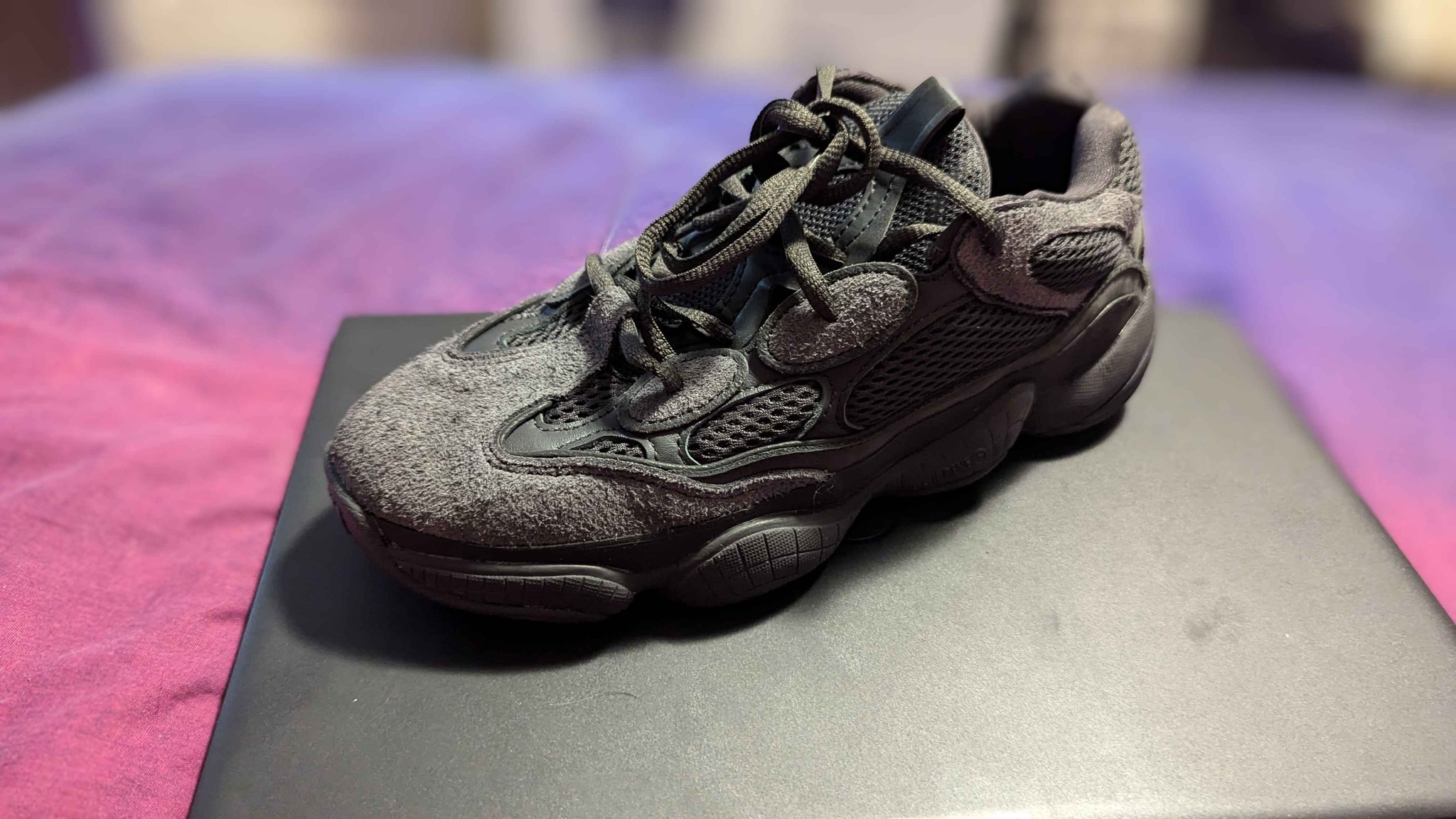 Got my Yeezy "Utility" black 500. Took only 4 days to come. I hate how the color varies depending on the angle of the picture. None the less, great craftsmanship from finekick